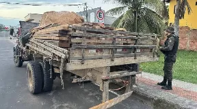 Na madrugada desta terça-feira (9), militares do Pelotão Ambiental do 6º Batalhão apreenderam um caminhão que transportava 6 m³ de